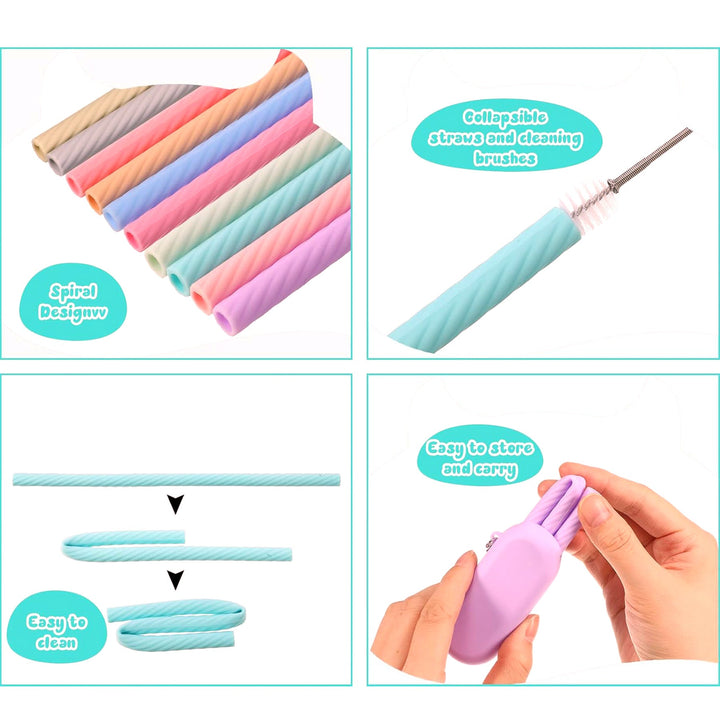 Reusable, Drinking, Travel, Flexible, Eco-Friendly, Brush, Beverages, Tumbler, Food-Grade, Case, Cleaning, Folding, Bpa Free, Outdoor, Camping, Coffee, Cup, Smoothies, Kit, Smooth, Pipette